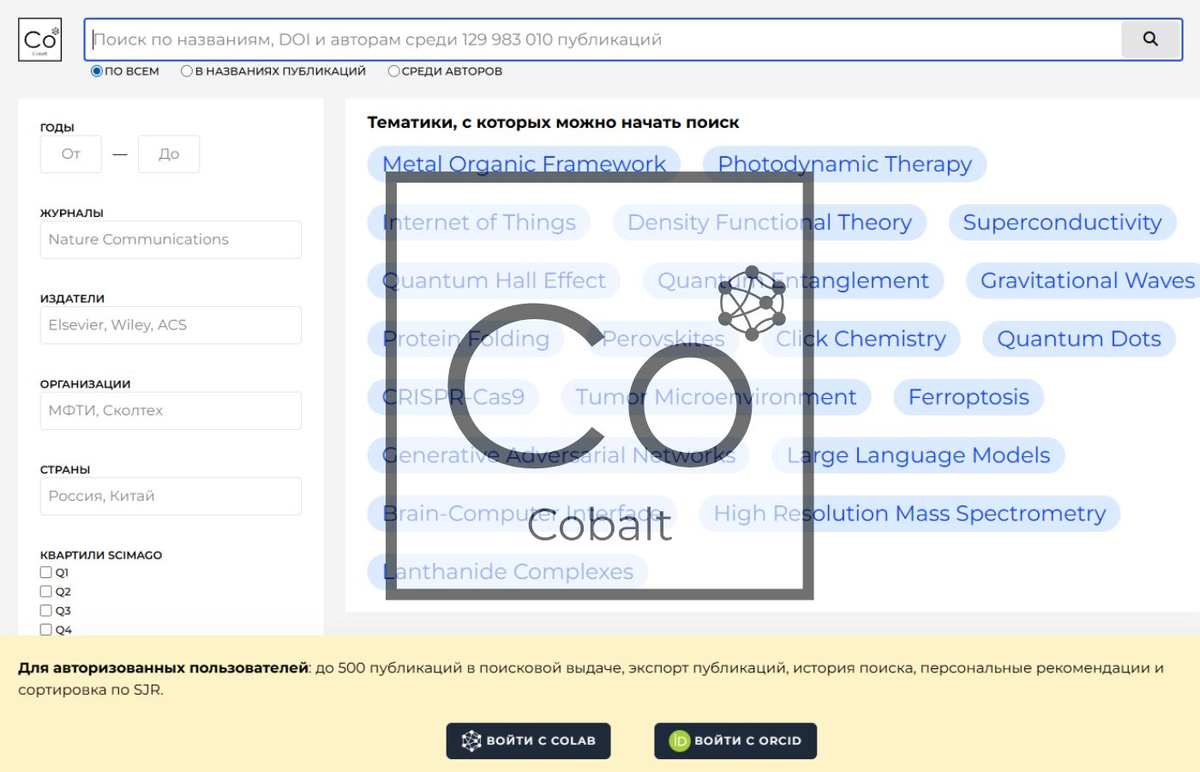 Отечественная платформа для ученых CoLab представила масштабное обновление своего научного поисковика Cobalt. Теперь российские исследователи имеют в своем распоряжении мощный и удобный инструмент, не уступающий, а по ряду параметров и превосходящий зарубежные аналоги . Расширенные возможности поиска