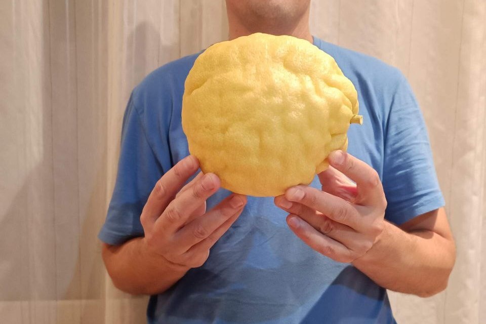 — Он прямо такой огромный, — с гордостью говорит Денис. — Но главное — не только вес, но и вкус. Очень толстокожий, до полутора сантиметров. И очень вкусный. Намного лучше, чем в магазине. Он прямо такой терпкий очень. Аромат — отдельная история. Когда уже созрел, в квартире запах прямо слышно. Вот именно цитрусовый такой. Через кожу, даже не разрезая плод. Ну а когда режешь, естественно, — запах сумасшедший.
