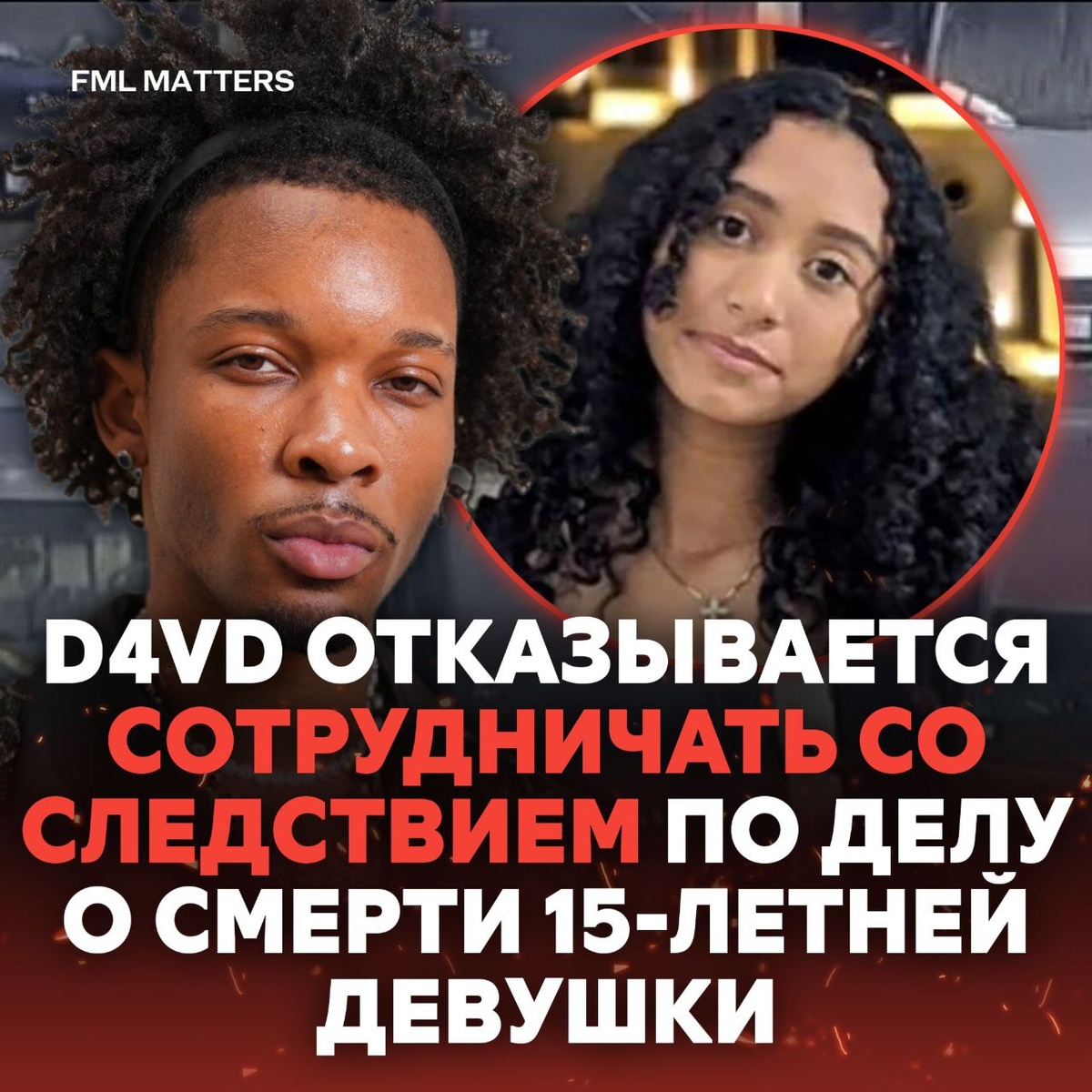 В ответ на пост ❌ D4VD ОТКАЗЫВАЕТСЯ ОТ СОТРУДНИЧЕСТВА СО СЛЕДСТВИЕМ! Певец отказывается сотрудничать со следствием по делу о смерти 15-летней Селесты Ривас, тело которой нашли в багажнике его Tesla. По данным источников, артист не даёт показания и официально считается подозреваемым. Осложняет расследование то, что тело девушки было частично заморожено, что может сделать невозможным установление точной причины смерти. 💀 FML MATTERS