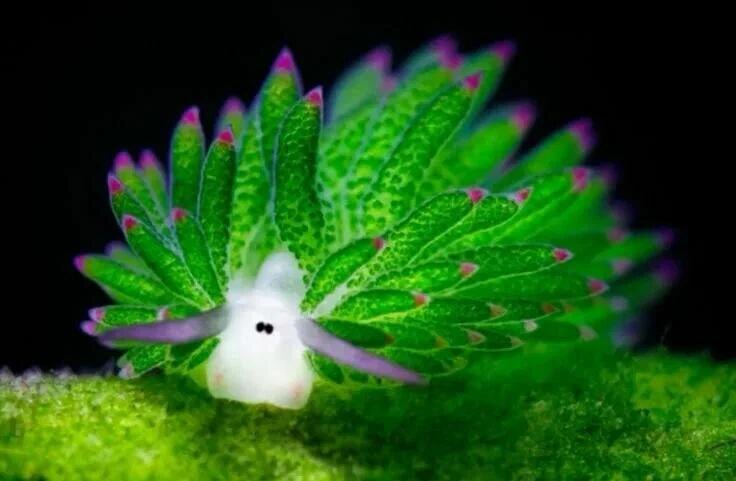 Это морская овечка — морской слизень, способный к фотосинтезу (у него есть хлоропласты!)