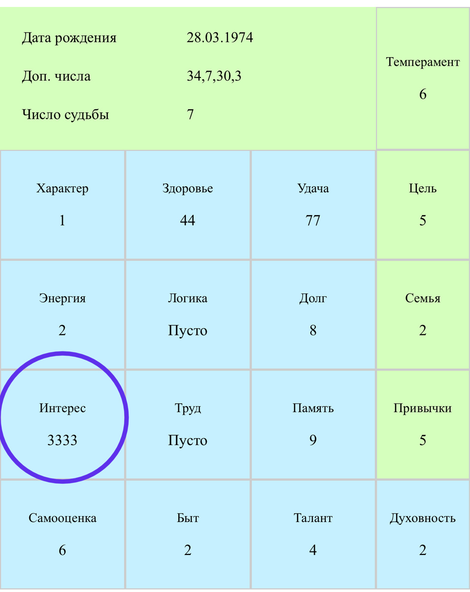 Если в вашей Матрице тоже 3333, то это описание и для вас. Но помните, что на каждый Сектор матрицы влияют и другие Сектора и всю таблицу нужно рассматривать в комплексе.