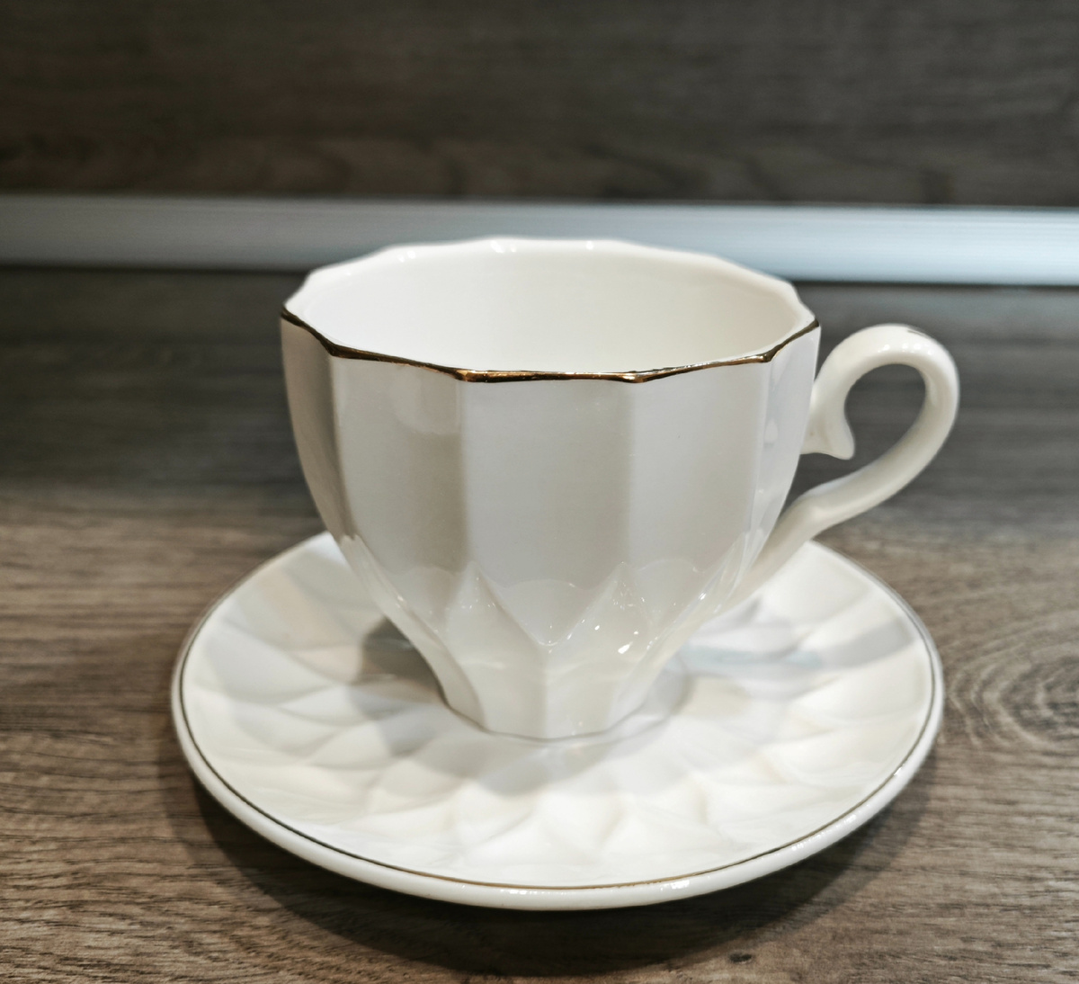 Мое фарфоровое баловство не дремлет, несмотря на рабочую загруженность. Это увлекает и отвлекает. В этот раз произошёл круговорот современной посуды, вот такая неожиданность. Продался чайный сервиз фирмы Коралл. Покупался очень давно и совсем не использовался. И форма и внешний вид мне нравятся, но вот что-то не то. Поэтому и решила пристроить в новые ручки. 6 чайных пар ушли за 1200р, считаю, что цену поставила чисто символическую за такой набор. Неожиданно для себя, увидела и влюбилась в современную посуду, которую тут же и заказала на Авито. Две чайные пары и сахарница обошлись мне в 800 рублей. Это польская фирма Cmielow. Именно такого нового сервиза в продаже я не нашла, но есть похожий, с этими же формами, но рисунок чуть другой. Меня "зацепила" форма. Посуда будто стоит на милых "лапках". И рисунок очень красивый, лента с позолотой и матовый белый узор. Объем чашек очень хороший, 230мл. Идеально для утренних кофепитий. Мне редко нравится что-то из современного, но вот поя
