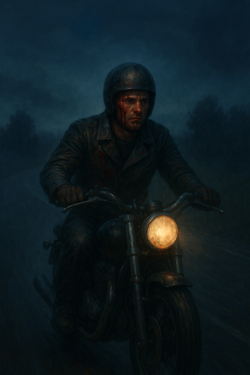 Дорога казалась бесконечной. Крик всё звучал в ушах, как эхо из ада. "Хэй! Хэй!" — кричал кто-то, но Алексей не оборачивался. Он гнал, что было сил, стараясь уехать как можно дальше от того места. Мысли путались: вызвать полицию? Вернуться? Нет, это конец — тюрьма, штрафы, потеря работы. "Это была случайность", — повторял он, как мантру. Наконец, огни города показались впереди. Он сбавил скорость, въехал в свой район, припарковал мотоцикл у гаража. Руки дрожали, когда он снимал шлем. Кровь засохла на щеках, но он не стал смывать — просто зашёл в дом, запер дверь и рухнул на диван в гостиной. Сон пришёл быстро, но был полон кошмаров: тёмная дорога, крик, кровь...
