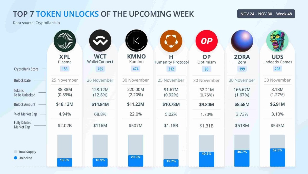 🔸Топ 7 токенов, которые разблокируют на следующей неделе