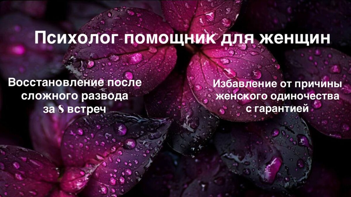 Вот такую обложку сделала я для разных соцсетей. И немного поменяла описание : Помощь женщинам после расставания и развода. Избавление от чувства вины, страхов и одиночества. Исцеление самооценки. Результат через 8 встреч. Запись на консультацию, на расклад в лс. Помогаю женщинам вернуть свою самоценность, исцелить самооценку, начать жить в гармонии с собой. Запись в личные сообщения. Мой канал в телеграмм: https://dzen.ru/id/62f56d0e324aad42338e0c80 Моя книга: https://ridero.ru/books/magicheskoe_obretenie_zhenskoi_sily/ ——— Решила в качестве моего цвета выбрать лиловый. Цвет мудрости и магических знаний). Потому что то как выходить из сложных ситуаций и заглядывать в будущее - что это если не мудрость и магия? Как вам?