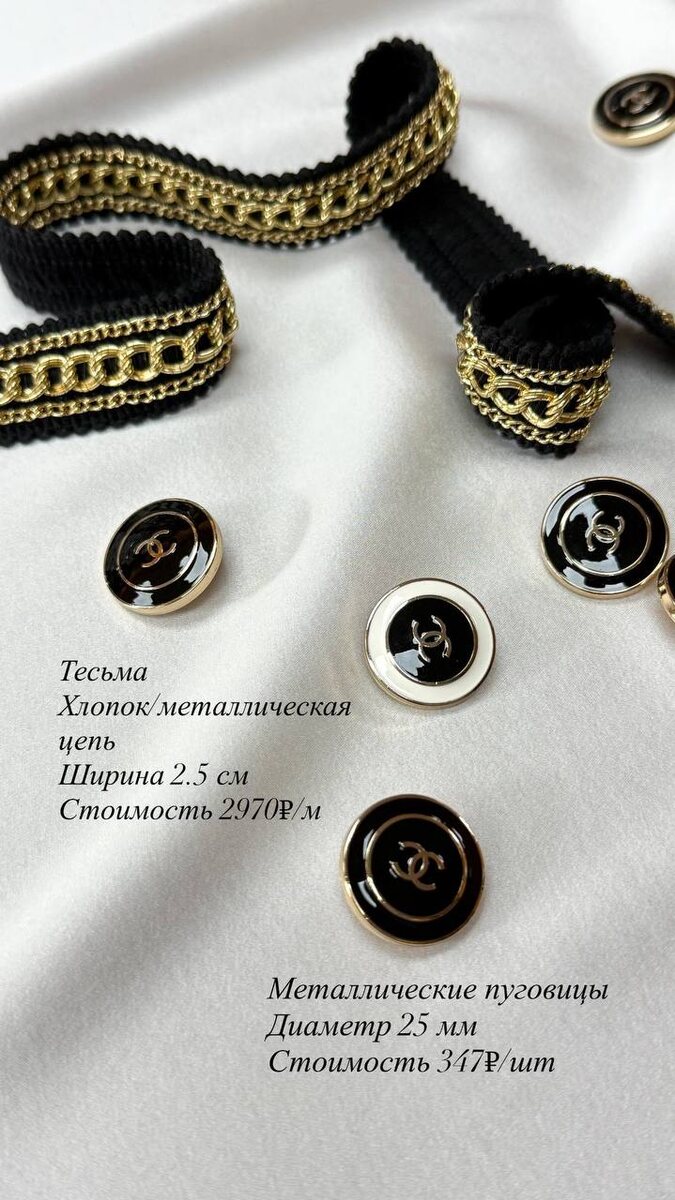 Тесьма в стиле CHANEL, в чёрном оттенке с золотой цепочкой. Такая тесьма станет идеальным декоративным элементом на вашем изделии. Состав:хлопок 100% Цепь:металл-золото Ширина:2,5см Цена:2970₽/м Дорогие друзья, успейте оформить заказ, метраж ограничен! На первый заказ мы дарим Вам скидку 10% Для заказа пишите пожалуйста нам в телеграмм с волшебной фразой «Пришла из Дзен» Ссылка на наш телеграмм канал: Ждём Вас ежедневно, с 10:00 до 20:00 По адресу: г.Москва, ул. Мневники д.6, п.6