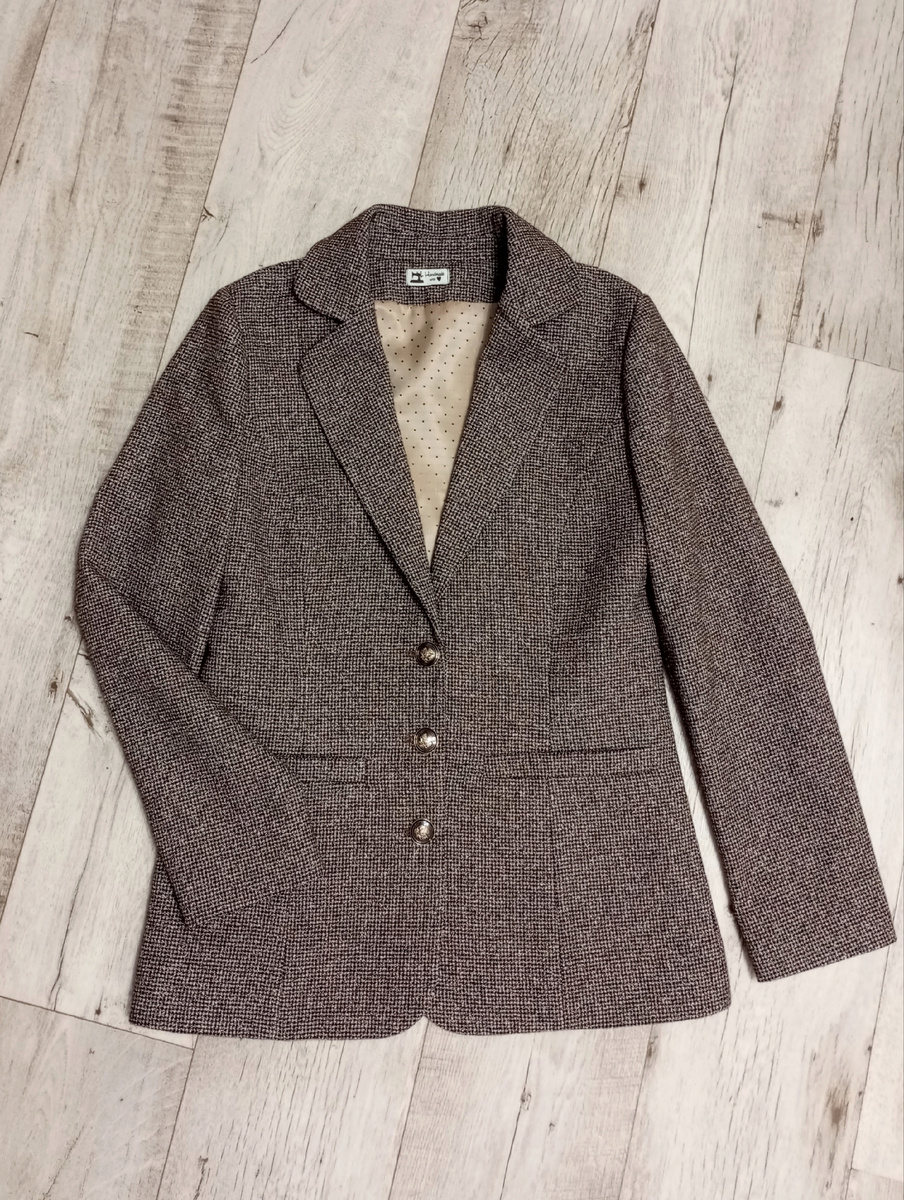 Жакет классического кроя и классического объема, без оверсайза. Достаточно свободы, мне выкройка понравилась. Из изменений: карманы, добавила длину рукава, в оригинале длина рукава 7/8. Ткань костюмная тонкая шерсть с вискозой, расход около 1,8 м, размер 38.