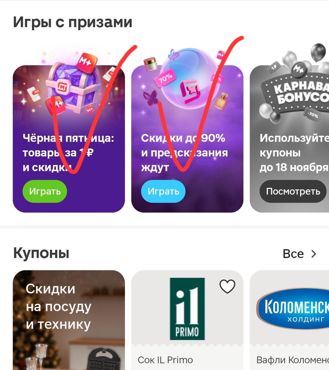 Всем здравствуйте 👋! Пока на авито тихо расскажу, что купила со скидками. Уже не раз писала, что в приложении магнит проходят разные игры и можно купить товары по выгодней цене. Сейчас проходят вот такие две игры 👇. Иногда, конечно, какая нибудь ерунда выпадает, но иногда и стоящие товары. Скопилось несколько купонов, вчера сходила в магазин, отоварила. В магнит косметик выпал купон на товар за 1 рубль. Косметика природные мотивы и на выбор несколько товаров. Взяла себе сыворотку для лица, у меня как раз закончилась. Пока не пробовала. В продуктовом магните купила несколько товаров по купонам. Своим кошкам корм Гурмэ. И Perfect fit. Корм вышел по 15 рублей, скидка 50%. Два сока с 50% скидкой. Сады придонья. 1 литр, 50 рублей. Сок IL primo 1 литр, 65 рублей. Сливочный сыр President, 400 гр, 144 рубля. Чай Richard, 100 пакетиков, 145 рублей. Взяла с ароматом бергамота. На яндекс маркете недавно приобрела колонку за 840 рублей. Уже неделю с ней развлекаюсь как маленькая 🤣. Раньше