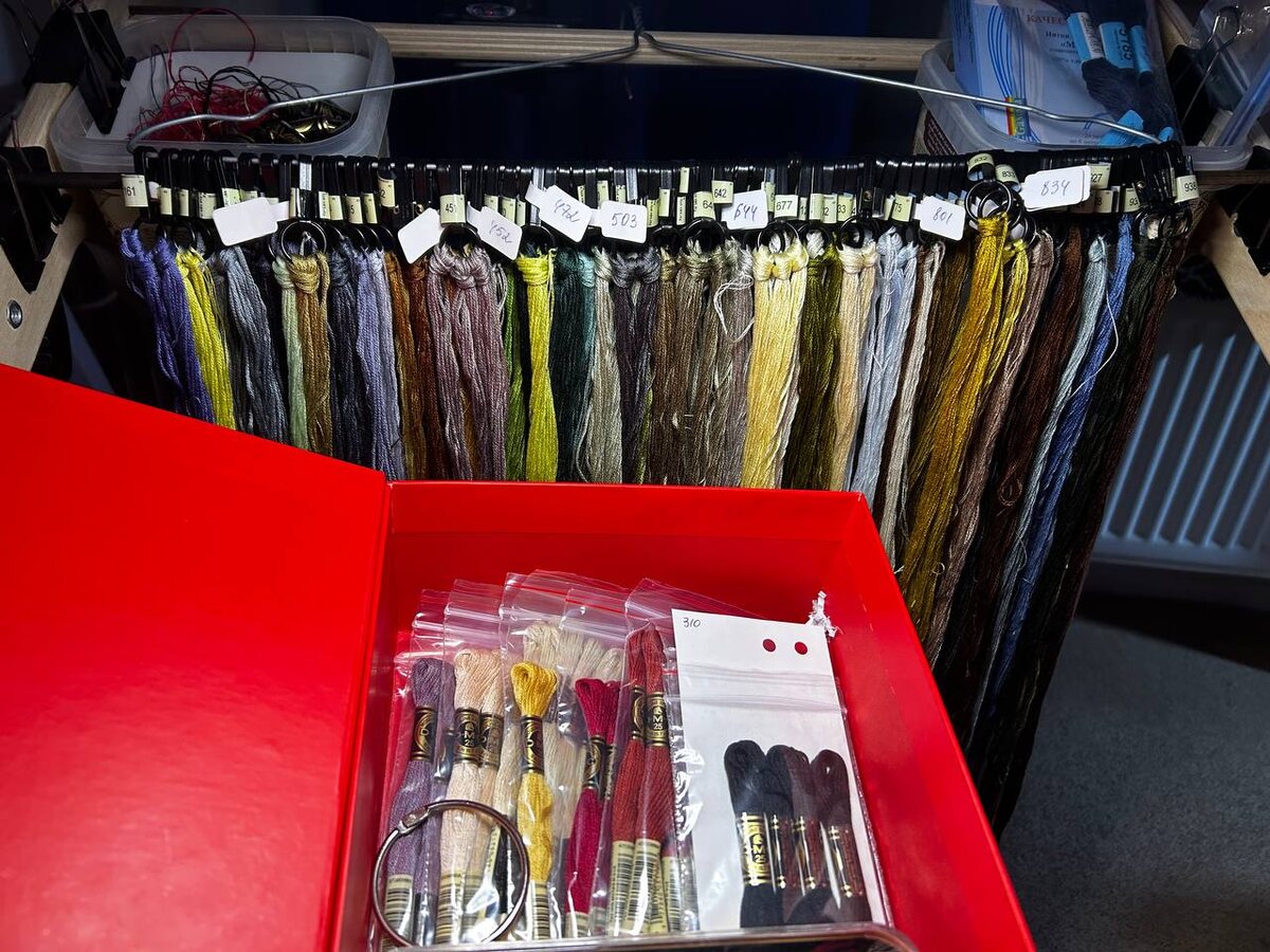 Сегодня я наконец-то сделала то, что должна была сделать как только у меня начали заканчиваться номера DMC для Горного озера АБК. Я разобрала коробку с запасами мулине! Порезала мотки, развесила нитки на карабинчики. В коробке остались только номера, которые вообще не понятно для какого проекта покупались. Это было утомительно. Моток DMC 413 чуть меня не доконал - пасма запуталась так, что пришлось резать как есть, на куски разной длины, точно не по 1 метру. Ну и ладно. На разбор ниток ушла бОльшая часть моего вышивального дня, но оно того стоило. Теперь я знаю какие номера проекта заканчивают, знаю что нужно заказать. Список получился не маленький. Теперь нет нужны ходить за 1 мотком в ближайший магазин, можно по списку заказать онлайн по адекватной цене. Уфф! :) Сажусь вышивать. Много ли успею сегодня - не понятно... Озон сжалился и спустя 3 дня все же привез мне гобеленовые иглы. 100 штук. Ура! :) #вышивка