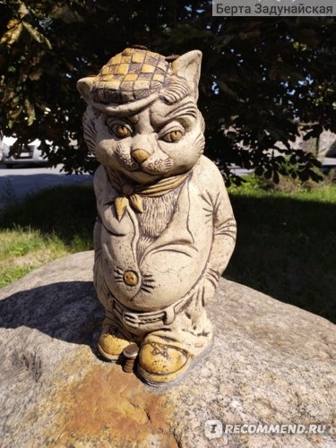 Скульптура напоминает о финском названии острова — Киссасаари, что в переводе означает "Кошачий остров".Скульптура была установлена перед зданием портовой конторы, чтобы увековечить память об этом историческом названии. Это небольшая скульптура кота, одетого в плащ, брюки и кепку, который сидит на камне. Несмотря на отсутствие официального имени, жители и прохожие называют его просто «Кот на камне». Адрес: Канонерский остров, д. 24