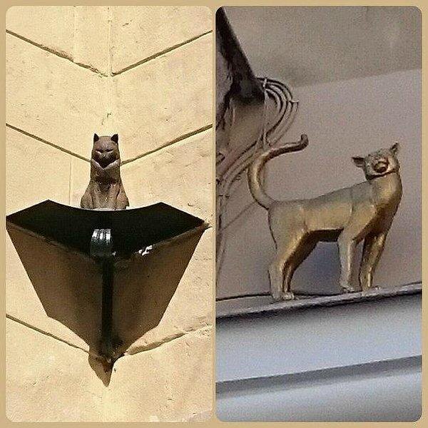 Памятник коту Елисею был установлен 25 января 2000 года, а кошка Василиса появилась напротив него 1 апреля того же года. Их создали в честь животных, спасших город от грызунов.