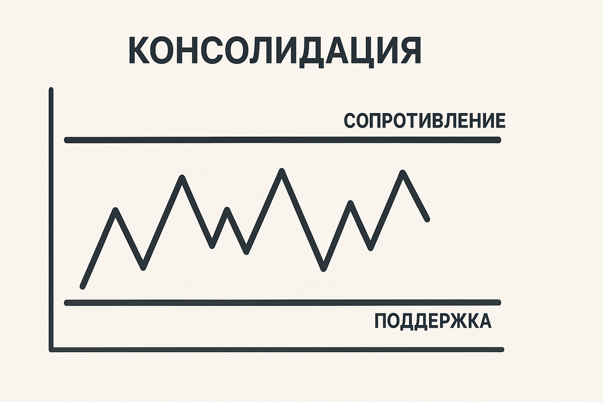 Консолидация в трейдинге — это период, когда цена движется в ограниченном диапазоне без значительного изменения.