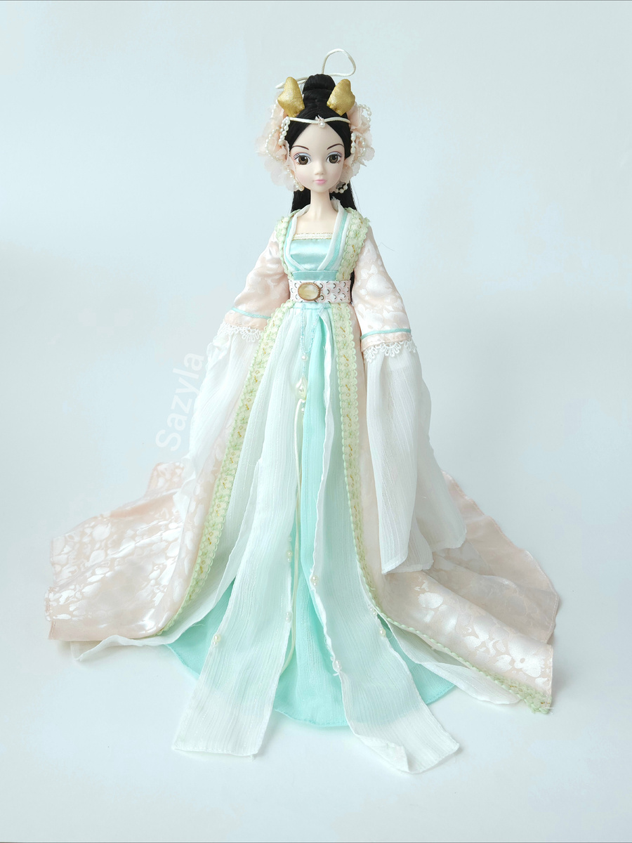 У меня на канале уже было две статьи про этот бренд, но то были современные образы. Теперь я перехожу к более “принцессочным”. Хоть данная кукла и является коллекционным выпуском, информации о ней не так много. Повелительница драконов выпущена в честь символа 2012 года - Черного водяного дракона. Я ее покупала через несколько лет после выпуска новую в коробке и не могу сказать, что это было сложно. Хотя кукла потрясающая, на мой взгляд. Коробка до наших дней не дожила, но и смотреть нам было особо нечего. Похожа по формату на коробку из-под обуви с отстраненным рисунком природы на заднике. Естественно, такой кукле и не нужна особо сложная коробка, но у меня даже мысли не возникло оставить куклу нрфб. Одета кукла в традиционное китайское платье. Я не большой знаток культуры, но во многих фантастических китайских фильмах женщины носят что-то подобное. Само одеяние состоит из нескольких слоев:верхнее розовое с цветочными узорами и нижнее мятное. Верхняя часть более плотная, с жемчу