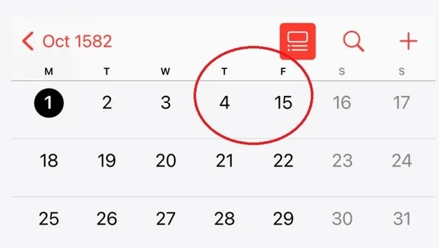 Обладатели смартфонов Apple, листая встроенное приложение «Календарь», могут совершить неожиданное открытие. Если переместиться в октябрь 1582 года, можно обнаружить, что после 4 числа сразу наступает 15 октября. Десять дней - с 5 по 14 октября - будто бы исчезли. Это не ошибка программиста, а следствие исторической реформы, которую скрупулёзно учитывает алгоритм календаря[1][2]. В основе этого «хронологического сдвига» лежит переход с юлианского календаря на григорианский. Юлианский календарь, введенный еще Юлием Цезарем, был большим шагом вперед для своего времени. Однако он имел небольшой, но значительный недочёт: его продолжительность составляла 365 дней, 5 часов, 48 минут и 45 секунд, что примерно на 11 минут и 14 секунд длиннее, чем фактический тропический год (время, за которое Земля совершает полный оборот вокруг Солнца).[2] Эта, казалось бы, мизерная разница за полтора тысячелетия накопилась и превратилась в 10 суток. К XVI веку календарное расхождение привело к серьезной про