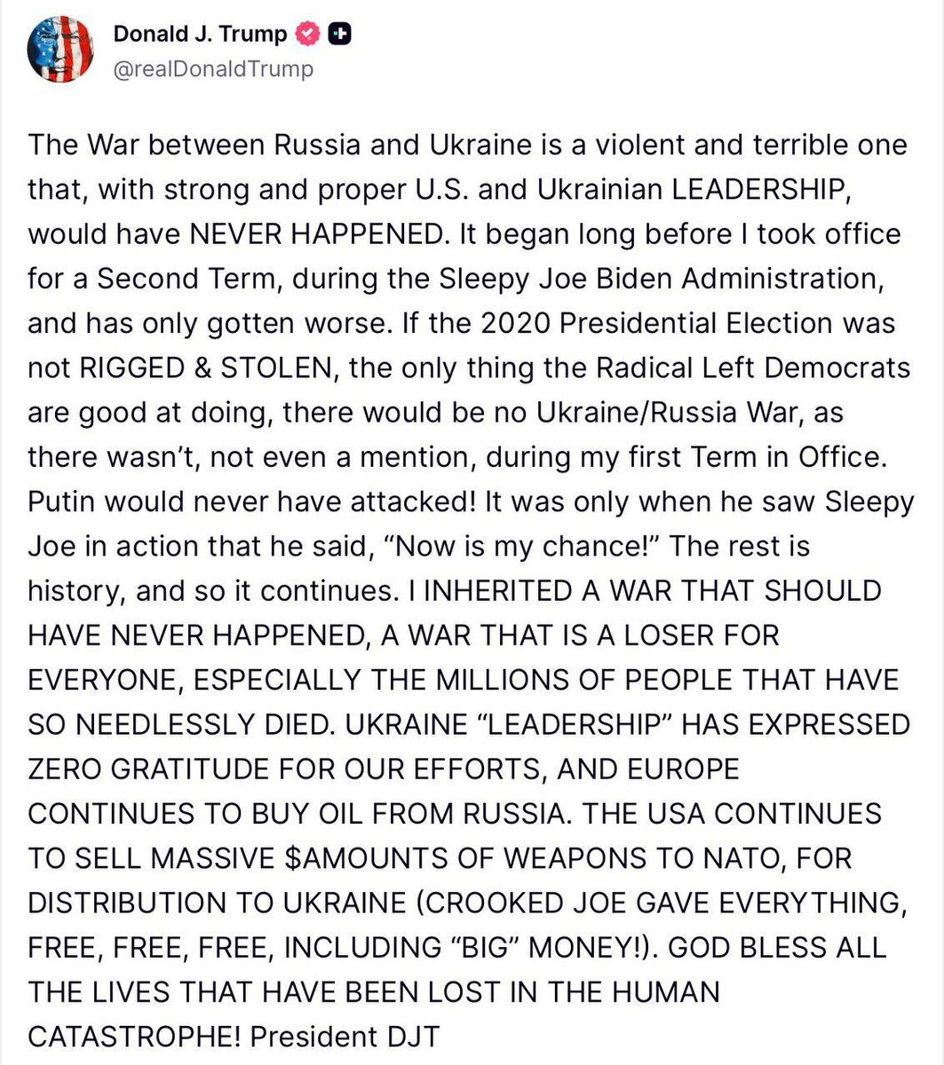 Никогда не было, и вот опять Дональд Трамп заявил, что война на Украине стала следствием слабости администрации Байдена и некомпетентности киевского режима. Он обвинил Зеленского в неблагодарности, а Европу — в финансировании России через покупку нефти. Ребят, ну правда, можно было бы и открыточку «Дякую» в Белый дом отправить! 🚲 Подпишись на Телега Online