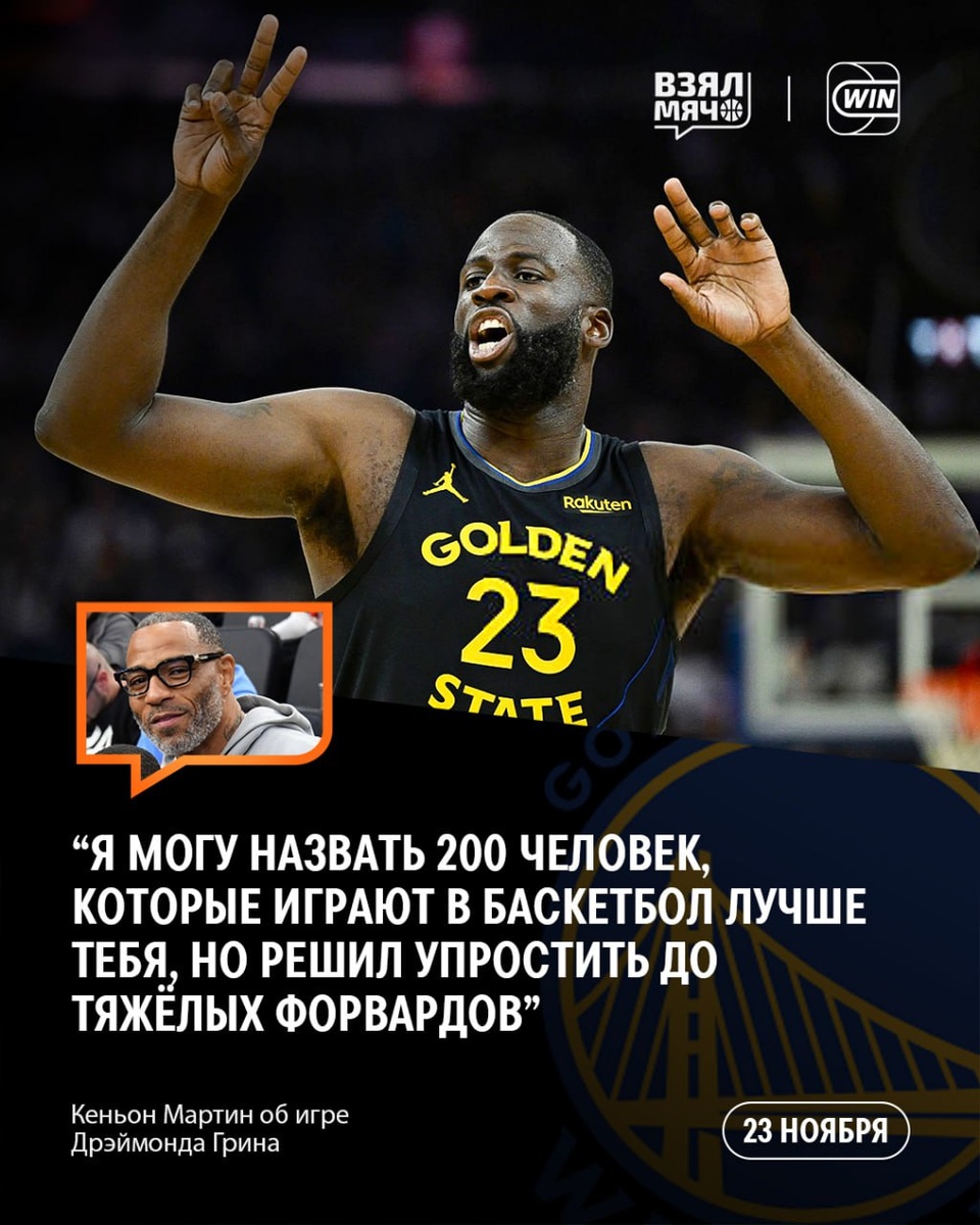 👊🏼 У Дрэймонда Грина назревает новый конфликт Кеньон Мартин решил напомнить о себе и назвал форварда «Голден Стэйт» ненастоящим «крутым парнем», который «выбирает подходящие моменты». Подкастер не смог не отреагировать на этот выпад со стороны бывшего игрока НБА, и ответил в своём стиле: 🗣 «Ты был первым номером драфта и лишь один раз попадал на Матч всех звёзд. Большинство сказали бы, что это провал». Мартин, в свою очередь, составил список из 51 тяжёлого форварда, которые, по его мнению, лучше Грина: 🗣 «Я могу назвать 200 человек, которые, по моему мнению, играют в баскетбол лучше тебя, но решил упростить до тяжёлых форвардов. Люди, которые действительно хороши в баскетболе, всесторонне, они умеют больше, чем просто забивать. Они играют лучше, то есть они именно играют в баскетбол». К слову о списке, в нём есть некоторые очень интересные имена: Яннис Адетокумбо Энтони Дэвис Дирк Новицки Чарльз Баркли Кевин Гарнетт Тим Данкан Деннис Родман Карл Мэлоун Крис Уэббер Амаре Стауд