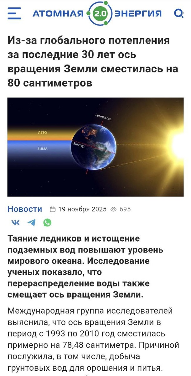 Учёные фиксируют смещение оси вращения Земли почти на 1м 🌍 Нам говорят, что это результат глобального потепления, а кто-то считает, что это планетарный переход в 5Д или ещё что-то там. Действительно, есть естестевнные планетарные трансформации. Но! Как ни посмотрю, то, что происходит сейчас, происходит не правильно и не естественно. Я не знаю, как должно быть на самом деле. Но аналитика идёт такая, что сейчас изменения во многом являются результатом геоинженерии. Иными словами, кто-то активно влияет на планетарный процесс и это не правильно. Планету от этого трясёт и будет трясти 🌋 А что вы об этом думаете? • Более детально ещё поразбираемся в этой теме на практическом курсе в декабре 🔮