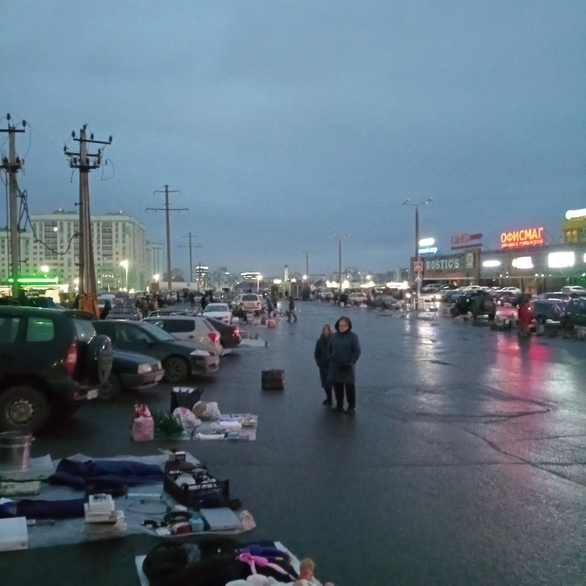 23.11.25. Воскресенье. Вчера я не стала раскрывать вам свой план, он мог бы и не сбыться, всё зависело от погоды. А сегодня, ура! И погода не подкачала и муж был выходной, в общем, звëзды сошлись. Всё пошло по плану и мы съездили на рынок. В общем, расскажу и покажу, как я в такую слякотную погоду поторговала. Проснулась в 04.00, представьте себе, без звонка будильника. Похоже, так мне хотелось на рынок, что не спалось)). Эх, если бы ещё не все эти сумки с товаром. Целых семь баулов! Вначале вещи надо разложить на рынке. Это ещё куда ни шло. Всегда мелькает мысль, что часть вещей обязательно продам. А вот когда складывается всё обратно, то понимаешь, что продала всего лишь часть того, что лежало в одной из семи баулов. Грустновато становится. Вот я уже и разложила, можно немного и пофотографировать. Время около семи утра. Тепло, +7, ветра нет, дождя тоже и это главное. Здорово, что не бестолку прошёл день. Никогда ещё такого не было, чтобы я уехала с рынка без выручки. Я, хоть и лю