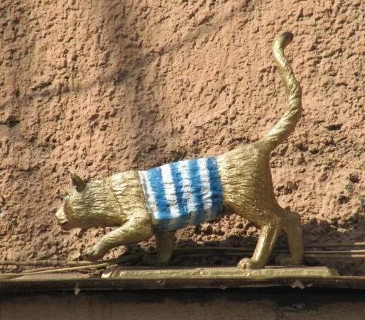 Небольшая скульптура кошки в тельняшке, установленная на карнизе дома на уровне второго этажа. Создана художником Владимиром Петровичевым. Первоначально располагалась на улице Правды, но была перенесена вместе с мастерской "Митьков" на улицу Марата. Адрес: Санкт-Петербург, улица Марата, дом 34.