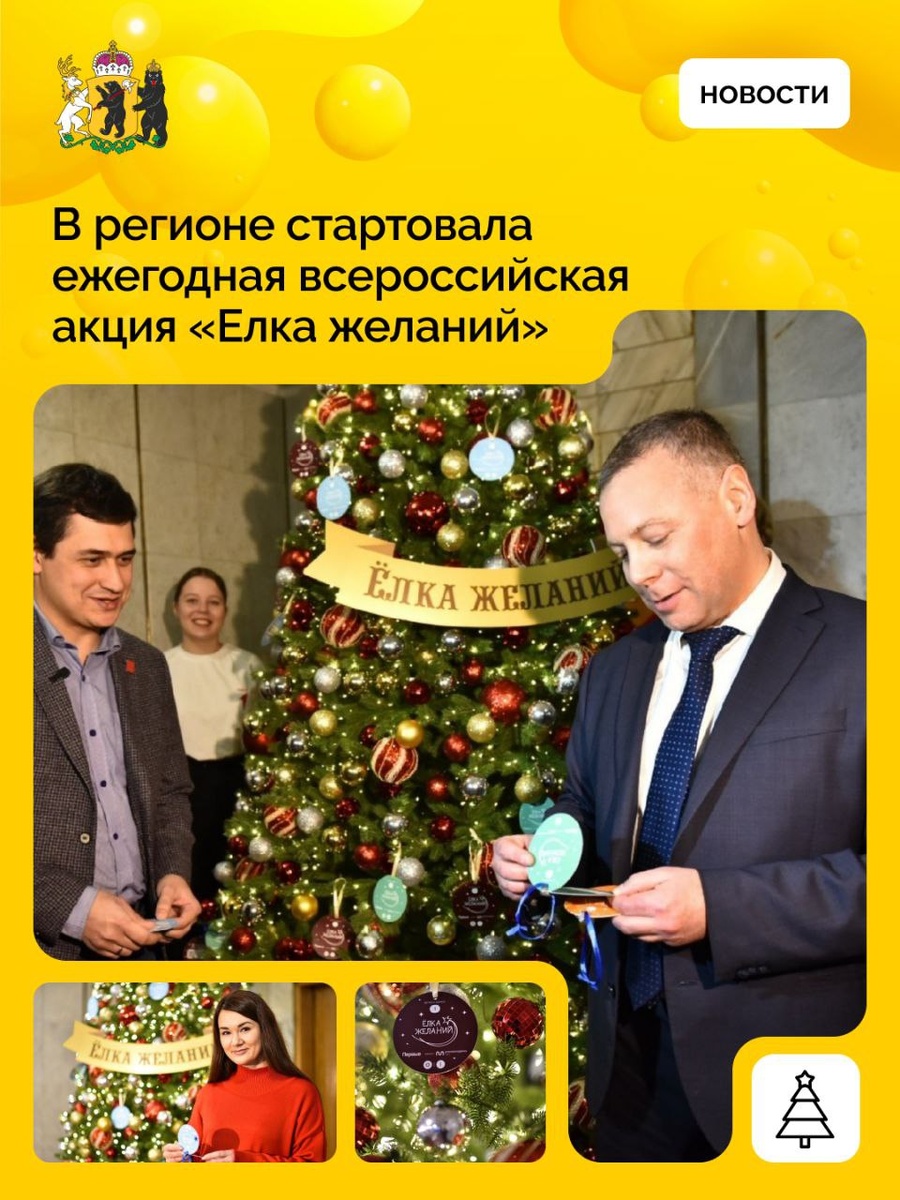 Михаил Евраев пригласил жителей Ярославской области принять участие в акции «Елка желаний» В рамках акции жители региона могут сделать новогодние подарки детям с ограниченными возможностями здоровья, сиротам и детям без попечения родителей, ребятам из малообеспеченных семей, детям участников СВО, а также юным жителям Донбасса, Новороссии и приграничных областей, подвергающихся обстрелам. – Для нашего региона участие в акции уже стало доброй традицией, – отметил губернатор Ярославской области Михаил Евраев. – Только в прошлом году исполнены мечты более чем 200 ребят, а еще годом ранее – 139. И каждая такая история – это не просто подарок, а добрые эмоции, яркие впечатления и поддержка, которые нужны каждому маленькому мечтателю. Шары с детскими желаниями можно будет снять с елок, которые установят в Правительстве региона, Ярославской областной Думе и администрациях округов. Также исполнить желание ребенка можно, присоединившись к акции на сайте проекта в качестве дарителя: елкажелани