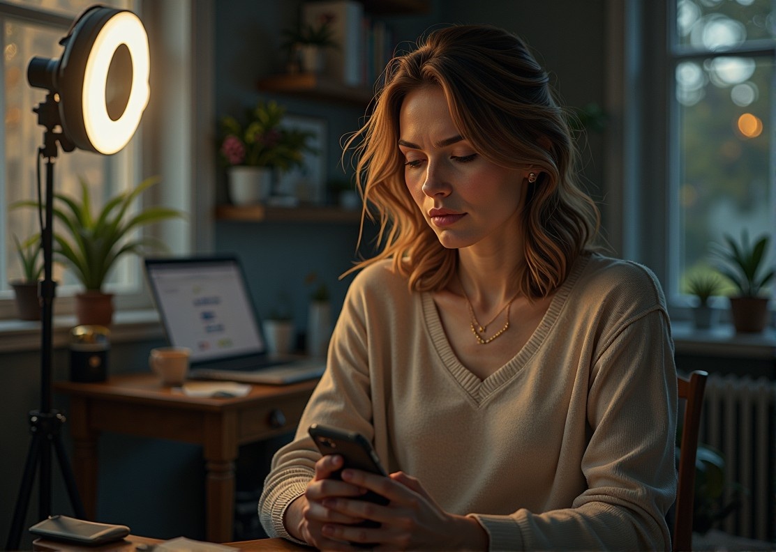 Кнопка «Завершить трансляцию». Чат погас. Кольцевой свет всё так же беспощадно подчеркивал каждую деталь: идеально уложенные волосы, аккуратный нюдовый макияж, тонкую золотую цепочку на шее — ту самую, что подарил мне не муж.