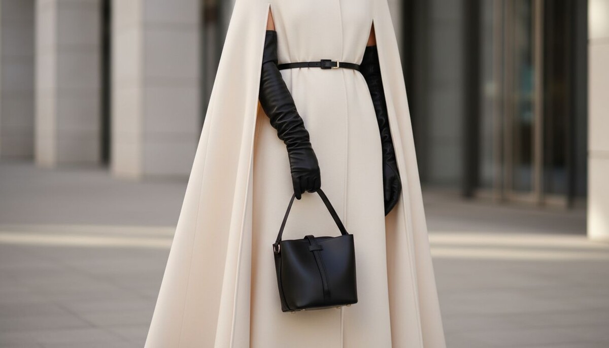 - Мягкий Монохром: Кейп и перчатки в одном оттенке, например, глубокий угольный серый или оливковый. Это выглядит невероятно дорого и элегантно.
