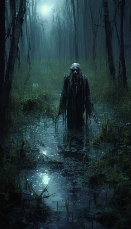 Тень перетекла в его сторону, побурлила. В туманном мареве вспыхнули глаза, уставились на лешего, налились кровью. Тень заклокотала, поплыла к Путяте - медленно, будто туча, извиваясь и булькая. На ходу стала вдруг сгущаться, приобретать форму. Вот уже появились плечи, наметилась голова, вытянулись руки. Вот тень уже и не тень совсем. На человека похожа, не плывет, а вышагивает. Глаза смотрят кровавыми бельмами, а вот лица нет вовсе, словно вылепить забыли. Вдруг существо передернуло, и идет теперь на Путяту баба синюшная, в струпьях вся. Подошла к лешему, смотрит в глаза. Лицо неподвижное, как маска надета.