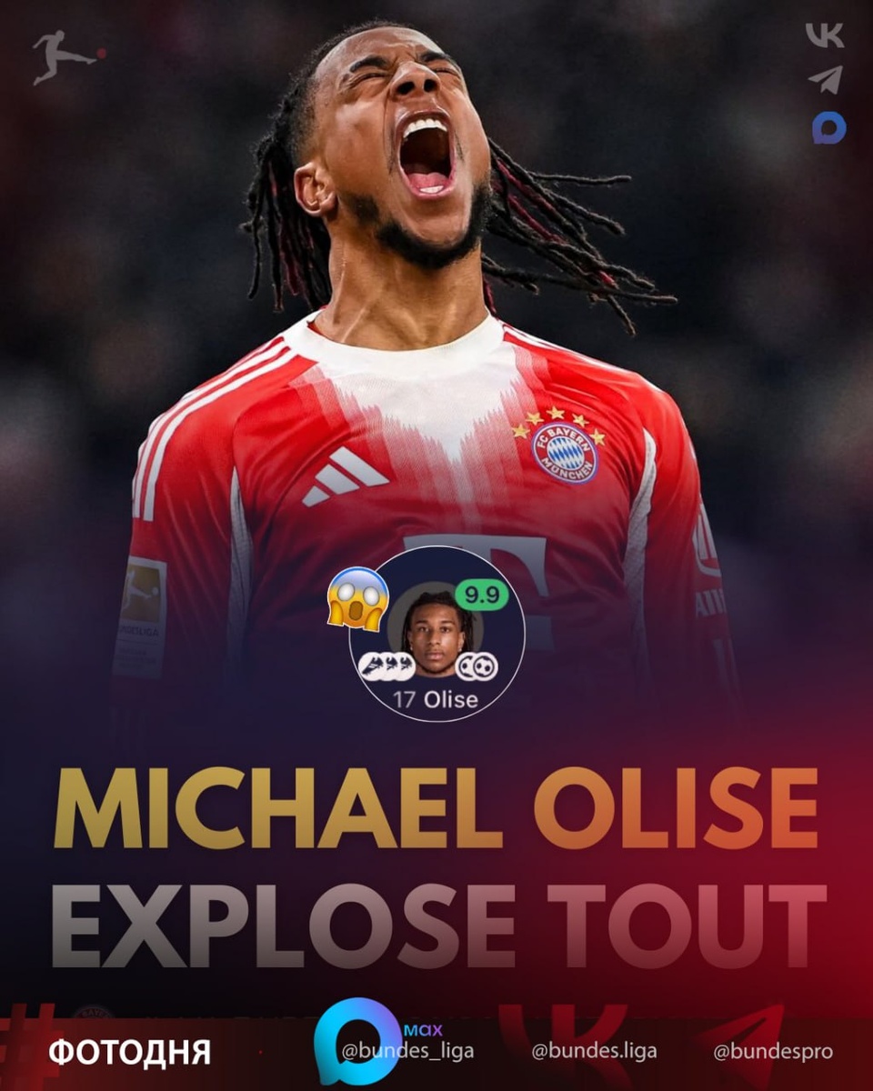 #ФотоДня 📸 Майкл Олисе сегодня в рубрике "Фото Дня". Француз потрясающе был полезен в матче с "Фрайбургом" 🔥 2 гола, 3 передачи. 👇 Его статистика в этом сезоне: 🏟 23 матча ⚽️ 11 голов 🅰️ 10 передач ⭐️ MAX -❤ Телеграм - ✅️Вконтакте