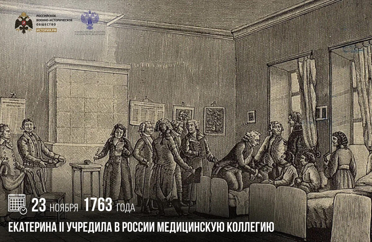 23 ноября 1763 года Екатерина II учредила в России Медицинскую коллегию