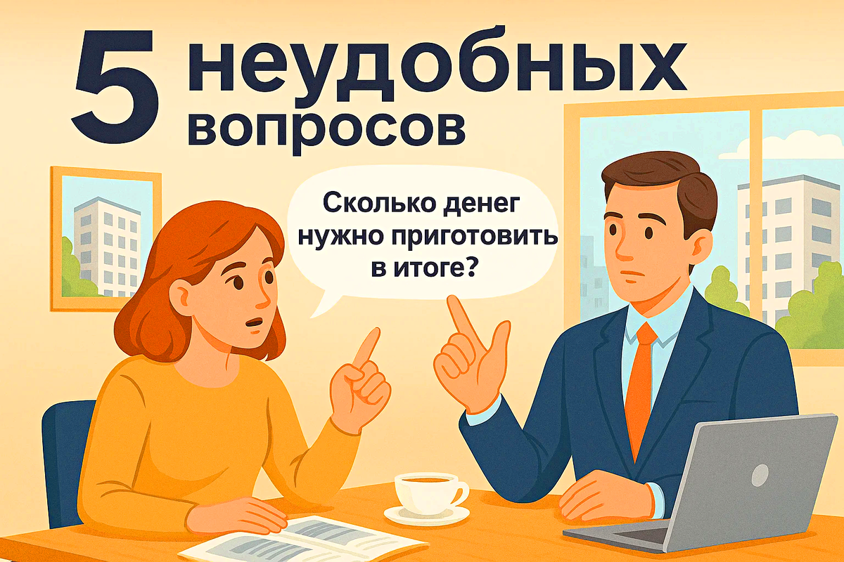 Вы приходите в красивый офис продаж. Вам предлагают кофе, показывают блестящие буклеты и так сладко рассказывают о будущем доме, что хочется немедленно всё подписать. Знакомая картина? Но давайте начистоту. Задача менеджера — продать вам квартиру в "своём" комплексе. Моя задача — найти лучший вариант для Вас на ВСЁМ рынке! И для этого я задаю вопросы, о которых в отделе продаж предпочитают молчать. 1️⃣ «Сколько денег нужно приготовить В ИТОГЕ» ? 🔈Что вам скажут: Назовут красивую цену из рекламы. ✔️Что я для вас сделаю: Я рассчитаю полную стоимость сделки до копейки: со страховкой, госпошлинами, услугами нотариуса и возможными скрытыми платежами. Чтобы в самый ответственный момент не возникло неприятных «сюрпризов». 2️⃣ «Когда я РЕАЛЬНО смогу заехать, а не по бумагам?» 🔈Что вам скажут: Озвучат официальную дату сдачи из договора. ✔️Что я для вас сделаю: Я проверю репутацию застройщика и историю его предыдущих строек. Были ли задержки? На сколько? Я дам вам реалистичный прогноз, чтобы в