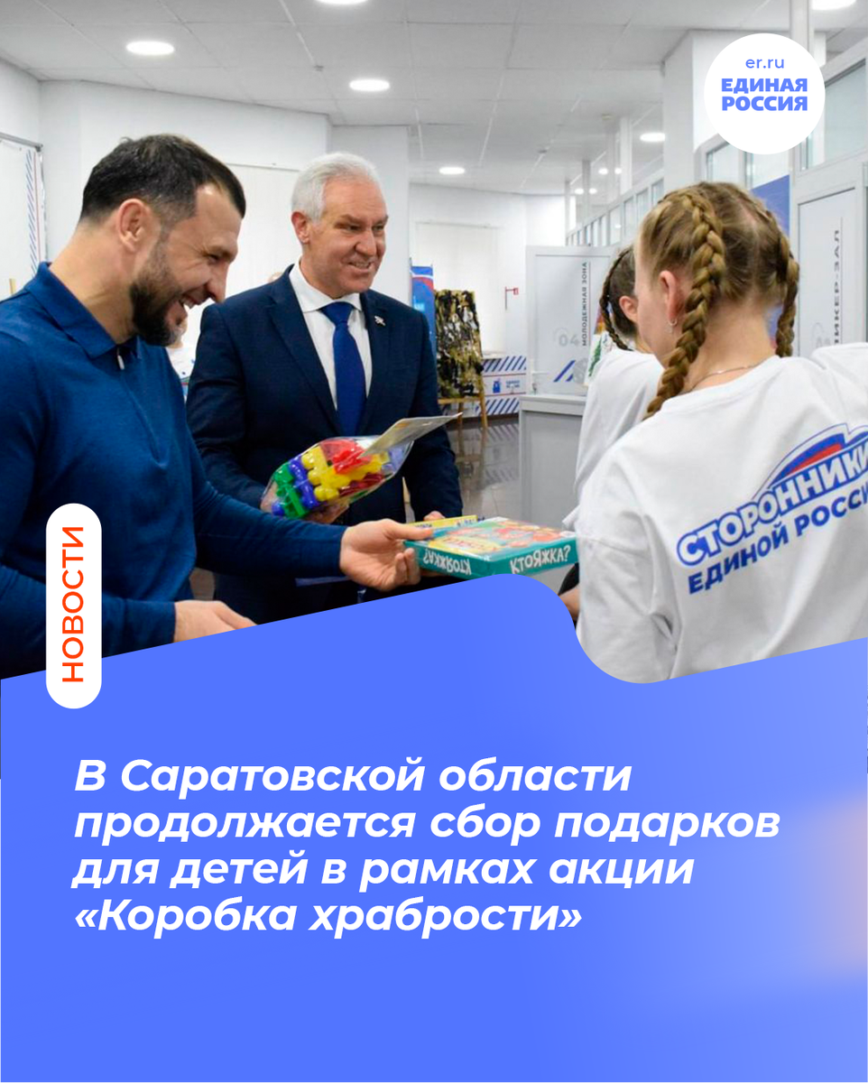 👍🏻Депутаты, члены и сторонники партии «Единая Россия», а также все неравнодушные саратовцы приносят в региональный штаб общественной поддержки партии игрушки, конструкторы, книги и раскраски.