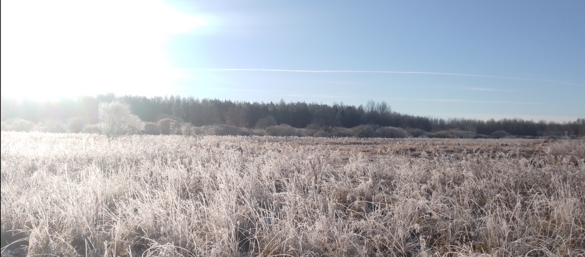 (С) Тютчев. Помню байку, что кто-то там обклеивал нутро балалайки битым хрусталём, чтобы придать звуку кристальную чистоту - может, и не байка, потому что хрустальный иней, окутавший всё вчерашним безветренным днём, усилил звуки многократно, и придал им особую мелодичность. Крик лебедей в озере за рекой, басовый рёв коров в соседней деревне, лай Серого возле нашего дома, перезвон козьих колокольчиков в дальней части луга - всё сливалось в единую сложную музыку. - Подожди меня! - Попросил мой кудесник утром, перекладывая земляных червей из домашнего "червяриума" в маленькую коробочку для рыбалки. - Ну, всё! Пойдём красоту смотреть! И мы вместе вышли на луг у реки. Он посмотрел красоту, и закинул удочку, а мне даже ничего не хотелось делать - только смотреть, слушать, и дышать, и я слонялась по полю часа полтора, пока меня не позвала Лакуша с требованием перевести её на новое место, потому что на старом трава закончилась. Весь день было минус два, но солнце грело; так необычно - мороз,