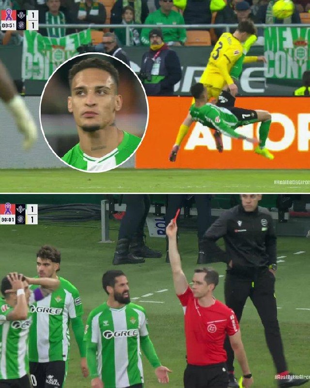 Тут легенда "Манчестер Юнайтед" Антони получил красную карточку за вот такой акробатический удар