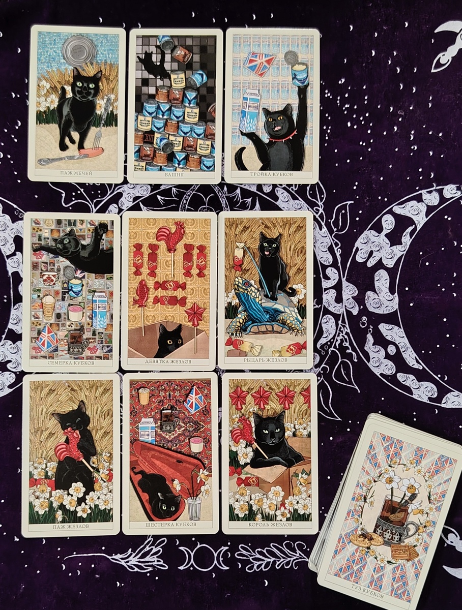 Здравствуйте дорогие подписчики и гости моего канала. Рада приветствовать вас на своём канале. Напоминаю, что расклады на канале общие и не могут совпадать у всех на сто процентов. Давайте спросим у чёрного котика какие приятные сюрпризы на вашем пороге. Загадайте себя, будет краткая сигнификация, чтобы вы могли понять, подходит вам расклад или нет. И так, вы сегодня: вы все учитесь и учитесь, как тот кот на карте учится есть вилкой и ножом. Кто-то из вас принялся за рискованное дело, но вы знаете, что это того стоит, ведь потом можно будет спокойно отпраздновать победу. Могли получить неприятные новости, столкнуться с молодым обманщиком, интриганом и аферистом, который мог нарушить ваши планы и оказался совсем не тем человеком, которым хотел казаться. Да, карта башня говорит, что в какой-то момент все вокруг начало рушится. Но вы как тот котик - убежали, чтобы вас не накрыло "бадающими баночками". Сменили курс и ушли от разрушений, послали этого обманщика. Вы человек не унывющий и