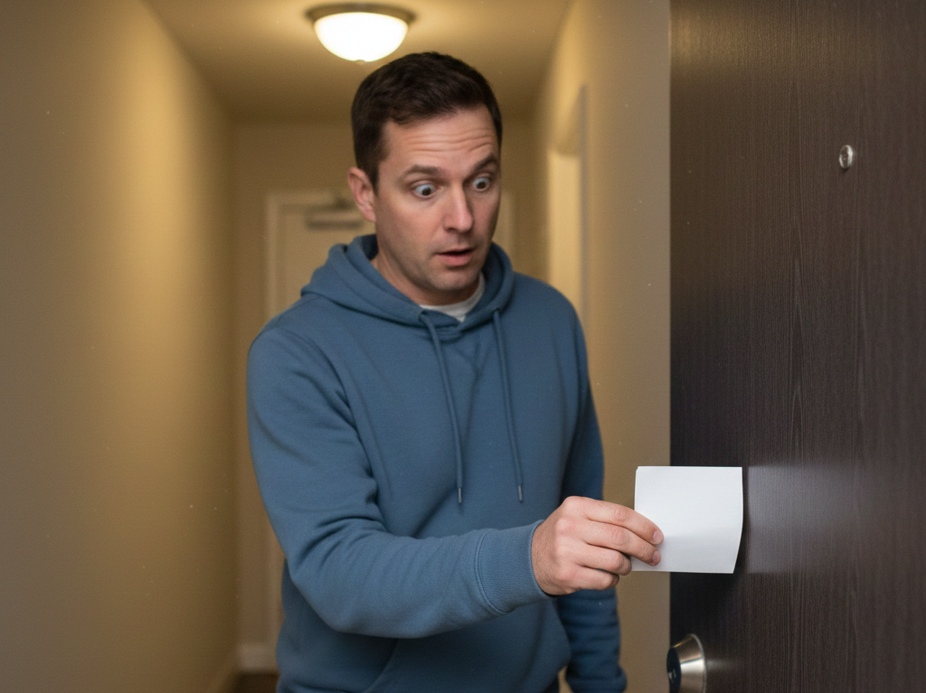 В тот вечер я вернулся домой около восьми. Обычный понедельник, обычная усталость после работы. Достал ключи, уже готовился открывать дверь, когда заметил белый листок, аккуратно засунутый в щель между дверью и косяком.