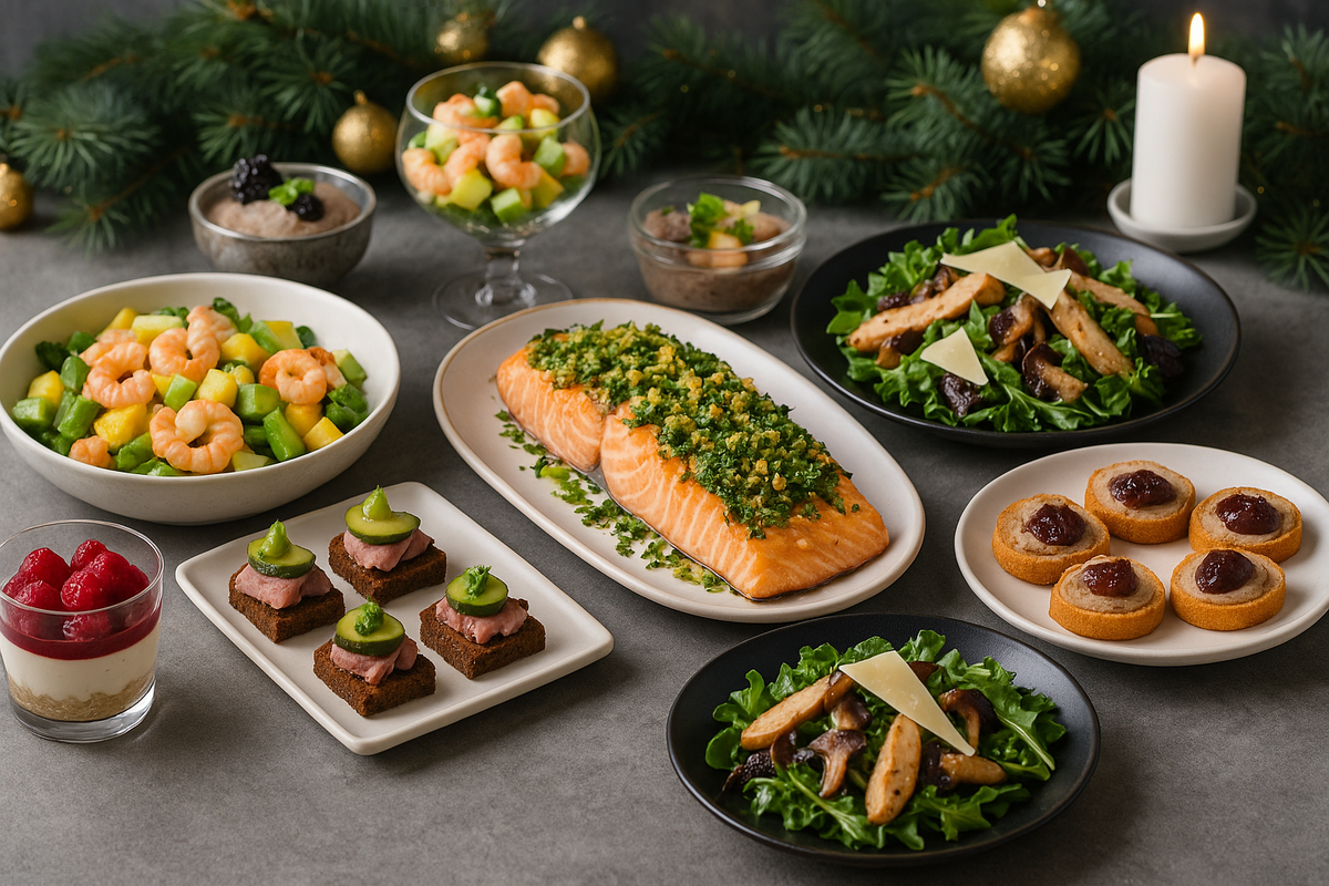 Новый год — лучший повод порадовать гостей блюдами, которые выглядят по-ресторанному, но готовятся без стресса. Меню ниже — это сочетание стиля, вкуса и удобства. Всё готовится заранее или быстро, а ингредиенты доступны.