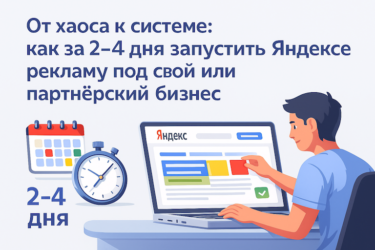В этой статье мы разберёмся, как превратить этот хаос в понятную систему и реально запустить рекламу в Яндексе за 2–4 дня — под свой или партнёрский бизнес. Без обещаний чудес, но с реалистичным планом, который можно повторять снова и снова.