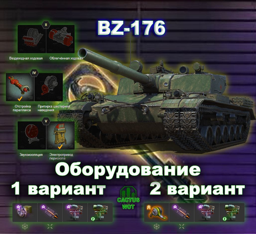 🇨🇳 BZ-176 🉑Тяжелый танк прорыва 8 уровень. ⛏Оборудование и полевая модернизация на картинке🔼 ➕Плюсы танка 📈Мощный калибр орудия и большой разовый урон 📈Голдовые осколочно-фугасные снаряды 📈Практически непробиваемая башня в лобовой проекции на 8 📈Механика реактивных ускорителей 📈Преимущество при таране ➖Минусы танка 📉Плохая точность 📉Долгое время сведения 📉Бронепробитие базовым снарядом слабое 📉Долгая перезарядка и как следствие низкий ДПМ 📉Слабое бронирование бортов, уязвимые зоны 📉Низкая базовая динамика ⬇️⬇️⬇️⬇️⬇️⬇️⬇️⬇️ #базазнаний@CactusWOT #BZ176@CactusWOT #миртанков