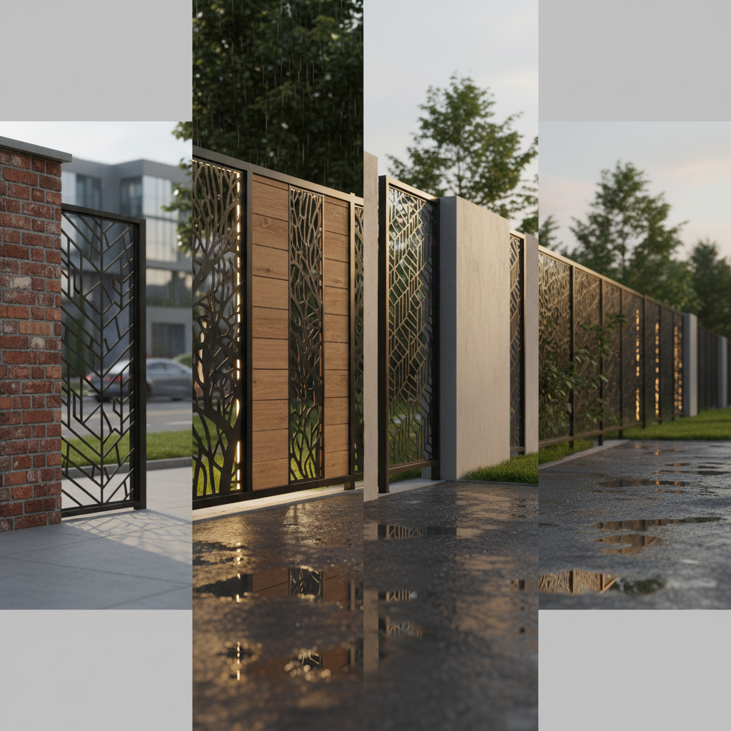 Ниже — разбор, как выбрать красивый забор, какие материалы работают, что сейчас в тренде и почему секции с лазерной резкой и декоративные столбы начинают вытеснять стандартный профнастил.