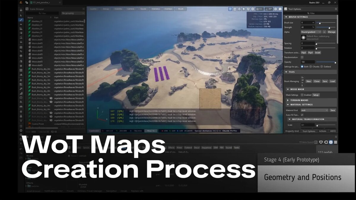 На специализированном сайте для художников и дизайнеров бывший лвл-дизайнер WG под ником «DiezelBoom» поделился процессом создания карт для WoT на примере локации «Устричный залив». Подобный материал мы видим впервые (а видели мы многое). Ни на одной конференции или в тематических сторонних публикациях такого не было. Лично нам было очень интересно посмотреть, хоть и в виде таймлапса. Описание от самого автора: «Процесс создания карты в редакторе World of Tanks. Этот таймлапс был снят во время создания карты "Устричный залив". На видео показано создание раннего прототипа карты. После этого было внесено еще несколько улучшений и проведены десятки игровых тестов, прежде чем карта была окончательно добавлена в игру». Важно: это процесс создания локации от идеи и наброска на бумаге до выхода на супертест! То есть впереди данный прототип карты ещё будет немного дорабатываться и проходить внутренние тесты. Далее локация отправится на супертест и в конечном итоге получит десятки игровых тесто