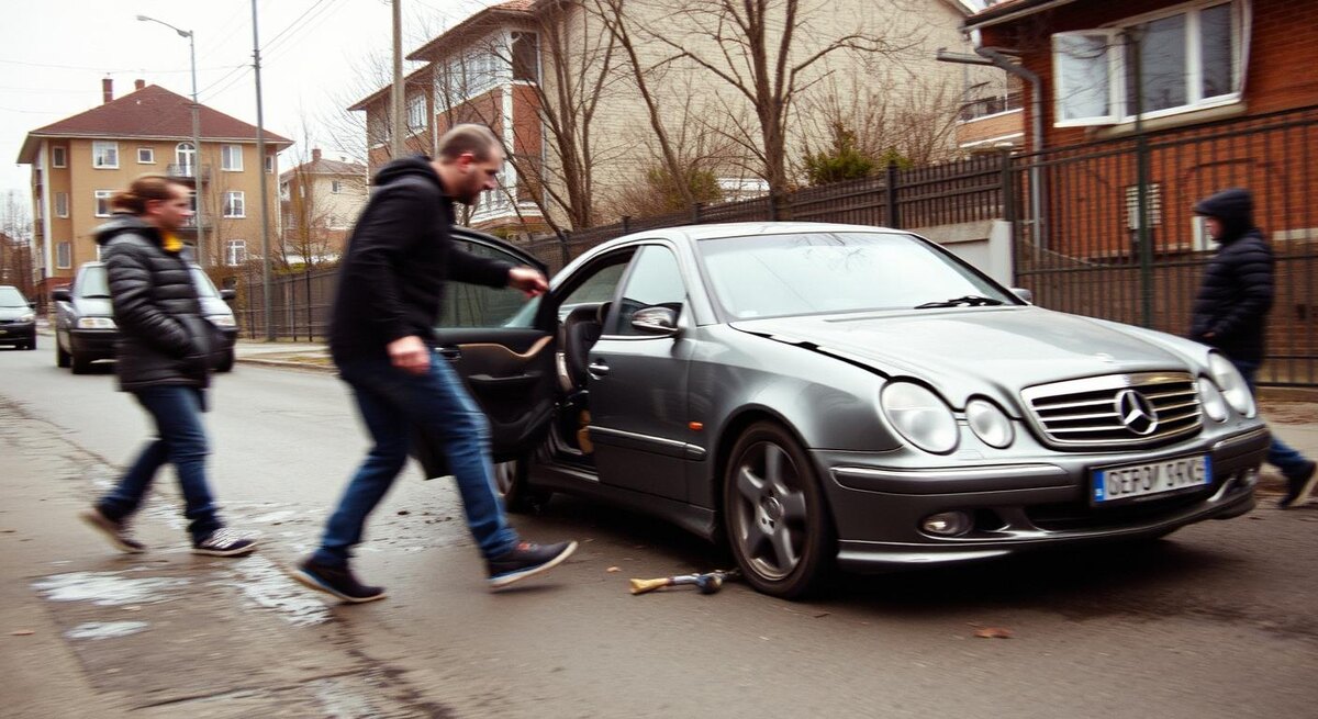 Эпицентр конфликта — буквально несколько секунд. Мужчина резко распахивает дверцу, кидает ключи на сиденье, отходит на шаг, будто берёт разбег, и с разворота бьёт по боковому зеркалу. Пластик летит на асфальт. Подростки отскакивают, но камеры не опускают — происходит что-то дикое и притягательное, как огонь. Следующий удар — кулаком по капоту, вмятина расползается, сигнализация воет, окна в подъезде вспыхивают светом. Он кричит: «Слабо? Да я и так могу!» — и в этот момент становится страшно: стекло ветровое трещит от удара ногой, осколки с тихим звоном осыпаются на коврик. Что это — безумная бравада? Демонстрация «силы»? Попытка заставить замолчать насмешки подростков ценой собственного имущества?