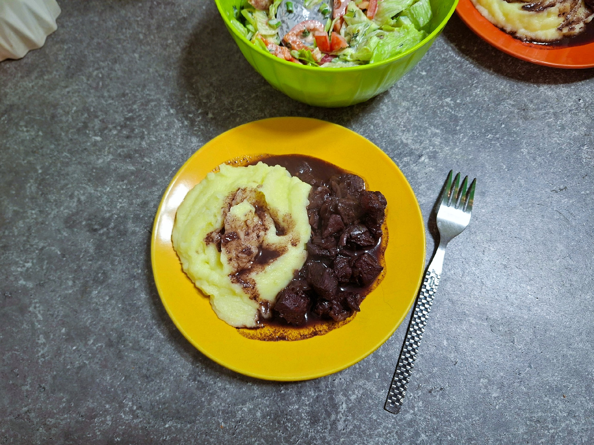 Тушёное мясо в красном вине с картофельным пюре — простой и ароматный рецепт