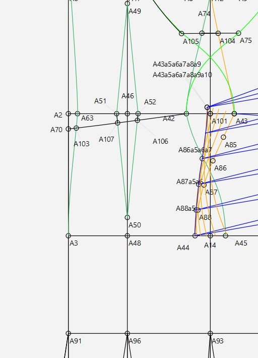 Когда думала, что закончила чертёж выкройки. Но вдруг заметила, что не выровняла талевые вытачки, т.к. линия талии "идёт" наклонная.. и кривая.. А вы пользуетесь инструментом " правильная вытачка"? Или только при чертеже плечевой вытачки. А ведь он предназначен для выравнивания вытачек при любой наклонной, даже если это кривая линия, а не прямая. Хотя иногда она он даёт странные решения, но ему виднее, он же рассчитывает лучшее положение сторон вытачки автоматически..