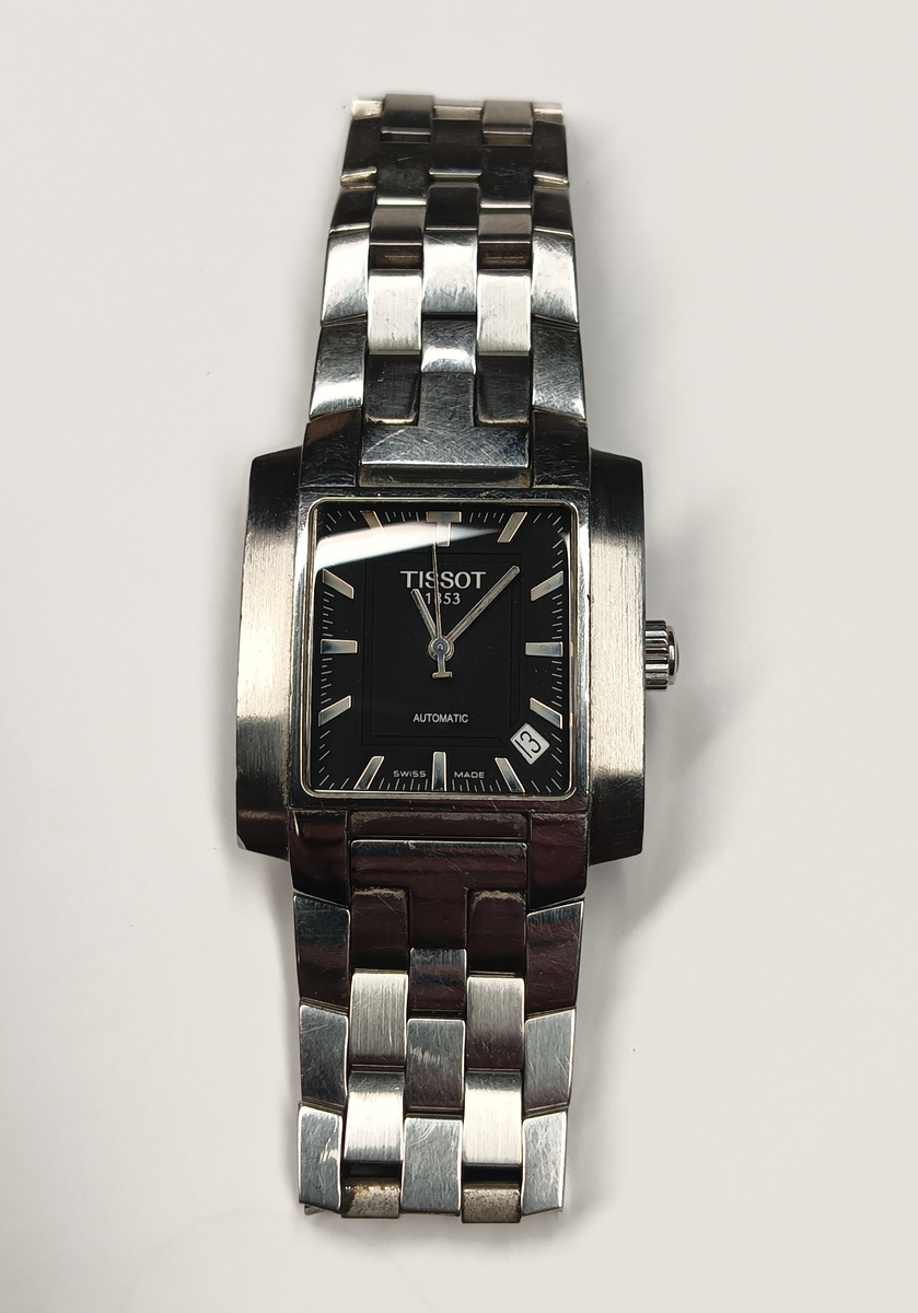 Доброго времени суток! По случаю, попали ко мне часы Tissot. Часы настоящие, им уже лет 15 наверное. Стекло изогнутое - сапфировое. Часы на ходу, но владелец немного на них жалуется, неточно идут и завод ручной туговато стал работать. Часы были куплены в европе в своё время. После покупки вода в них попадала, после купания в бассейне они запотели, были раскручены, высушены, и вот после этого уже очень долго ходят. Браслет также оригинальный литой. Задняя крышка держится 4 винтами. Поставил на проверку - да, можно немного улучшить. Откручиваю крышку. На мосту баланса даже есть винт для точной настройки точности хода! Да и вообще, впечатления от часов самые положительные - всё сделано просто великолепно, это только тактильно можно прочувствовать. Не зря они так дорого стоят, есть за что. Подправил выкачку и точность, теперь будут поточнее ходить. На боку показатели норм. Вниз цифером также лучше гораздо, чем было. На стекле, кстати, после стольких лет использования, ни одной царапины -