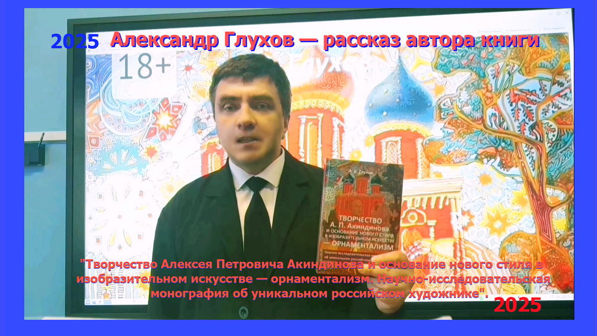 Видеообращение Александра Владимировича Глухова, — автора книги "Творчество Алексея Петровича Акиндинова и основание нового стиля в изобразительном искусстве — орнаментализм. Научно-исследовательская монография об уникальном российском художнике". Посмотреть и бесплатно скачать книгу в формате PDF можно на "Яндекс-Диск"