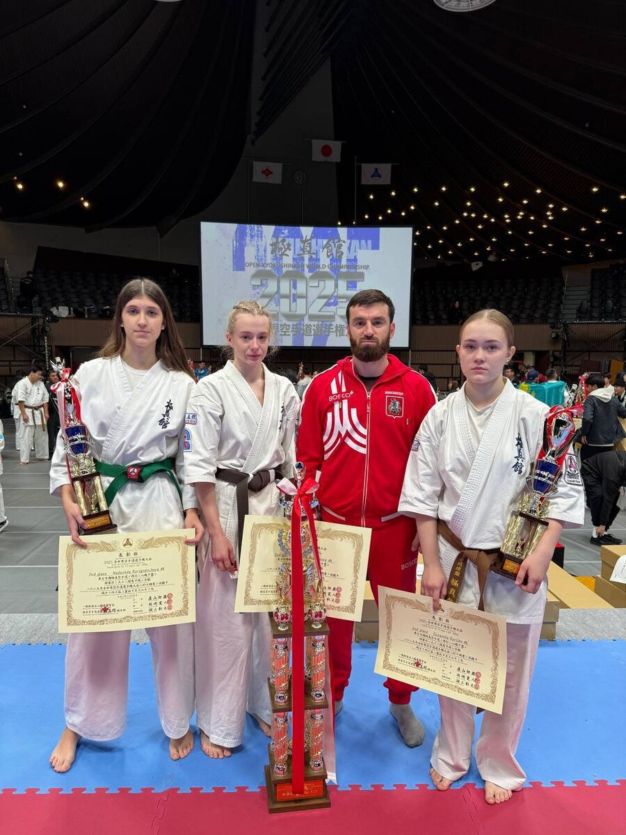 Воспитанницы клуба показали исторический результат на главных соревнованиях в Японии. Гордимся нашими чемпионками и их наставником! Второй день Чемпионата Мира по киокусинкай в Токио стал настоящим триумфом для всего нашего клуба! Наши спортсменки выступили блестяще и завоевали сразу три медали престижнейших мировых соревнований. Этим результатом гордится вся наша большая спортивная семья. Поздравляем наших героинь! С огромной радостью и гордостью клуб поздравляет своих бойцов, поднявшихся на подиум в Японии, на родине киокусинкай: Такой высочайший результат на мировом уровне — это закономерный итог титанического труда, бессонных тренировок и несгибаемой воли наших девушек. Вы настоящие воины духа и пример для всех учеников клуба! Поздравления нашему сэнсэю Этот громкий успех был бы невозможен без мудрого руководства и профессиональной подготовки. Клуб от всего сердца поздравляет нашего наставника — сэнсея Рустама Владимировича Алакаева! Рустам Владимирович, ваша методика, вера в сво