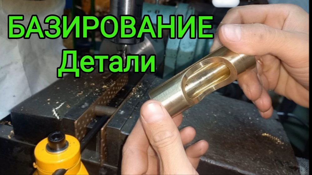 В этом видео, ссылка будет ниже, базирую в тистах фрезерного станка предварительно изготовленную деталь типа втулка. Задача просверлить отверстие для подвода смазки так , чтобы оно было перпендикулярно цилиндрической поверхности выборки. Глубина цилиндрической выборки 14 мм . Исходя из этих данных решаю изготовить цилиндрическую подкладку из калиброванного круга Ф14 мм . С помощью такой подкладки деталь автоматически выставляется в необходимом положении . После этого можно зажать тиски и приступить к сверлению отверстия. Деталь зажимаю через латунные прокладки . Делается это для того чтобы не повредить поверхность детали при зажима в тисках. В работе несколько таких деталей . На первой детали настраиваю отступ отверстия от края . Затем закреляю на столе фрезерного станка специальный фрезерный упор. После этого следующую деталь необходимо прислонить к упору и зажать тиски . Скорость обработки нескольких деталей увеличивае