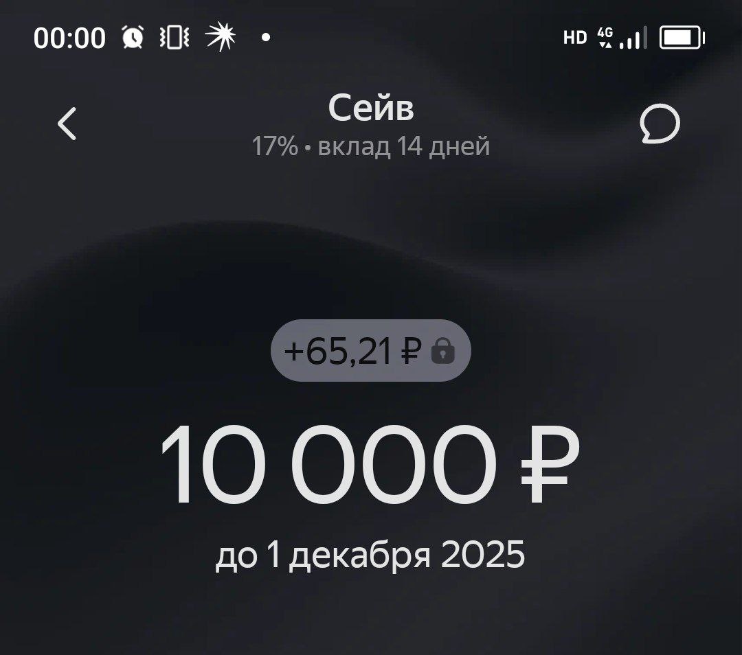 Открыла сейв на 14 дней под 17% и закрыла через два дня - нелогичный поступок, согласна. Мне просто показалось это бредом - 65 рублей и деньгами нельзя пользоваться. А мне предстоят скоро оплаты аренды, кредитки, связи, покупка телефона... И я перевела всё на накопительный в Т-банк. И вообще решила на долгосрок вкладывать в облигации и фонды, так выходит намного выгоднее, тот же фонд денежного рынка приносит от 17 до 21% и деньги можно вынуть в любой момент.