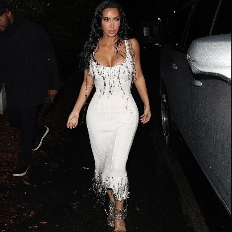 Ким Кардашьян удивила гостей вечеринки платьем, украшенным булавками. Звезда реалити-шоу выбрала провокационный образ. Модель приехала на мероприятие в Лос-Анджелесе, несмотря на дождливую погоду. Кардашьян выбрала весьма смелый образ. Звездная мать четверых детей надела белое облегающее платье от бренда Dilara Findikoglu, сообщает Page Six. Его ткань покрывали сотни булавок, а босоножки от Manolo Blahnik с похожим декором дополнили образ Ким. Бывшая супруга Канье Уэста уложила волосы волнами. Макияж получился броским — визажисты сделали основной акцент на глазах, а яркие румяна мягко подчеркнули скулы. ФОТО: Legion-Media, ТАСС