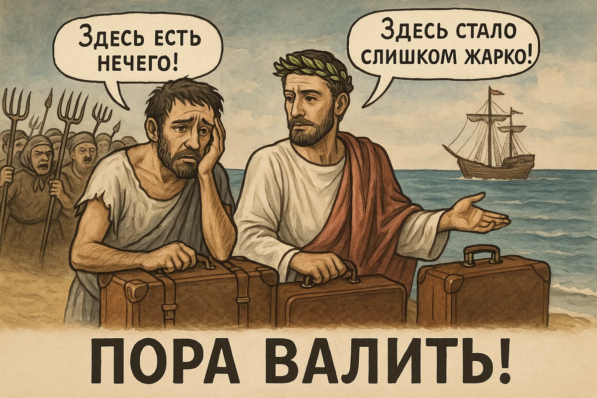 В VIII-VI веках до н.э. греки массово покидали родину. Причин было две: Города (метрополии — "города-матери") помогали переселенцам кораблями и охраной, надеясь наладить с ними выгодную торговлю. Колонисты искали идеальное место: Они основали десятки колоний по берегам Средиземного и Чёрного морей. Сократ шутил, что греки расселись вокруг моря, "как лягушки вокруг болота". 🐸🌊 Бизнес-схема: В Северном Причерноморье (территория современной Украины и России) греки соседствовали со скифами. Историк Геродот рассказал трагическую историю скифского царя Скила. Скил был сыном гречанки и любил греческий образ жизни. Он тайно приезжал в греческий город Ольвия, переодевался в греческую одежду (хитон и гиматий) и молился греческим богам.